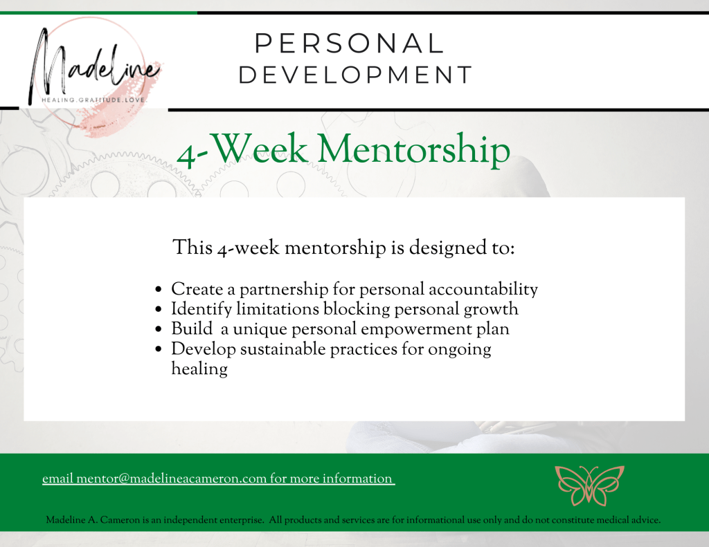 This mentorship is best suited for those seeking clarity and direction in moving forward on their life journey. Limit one session per 6-month period.